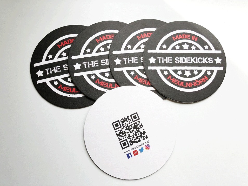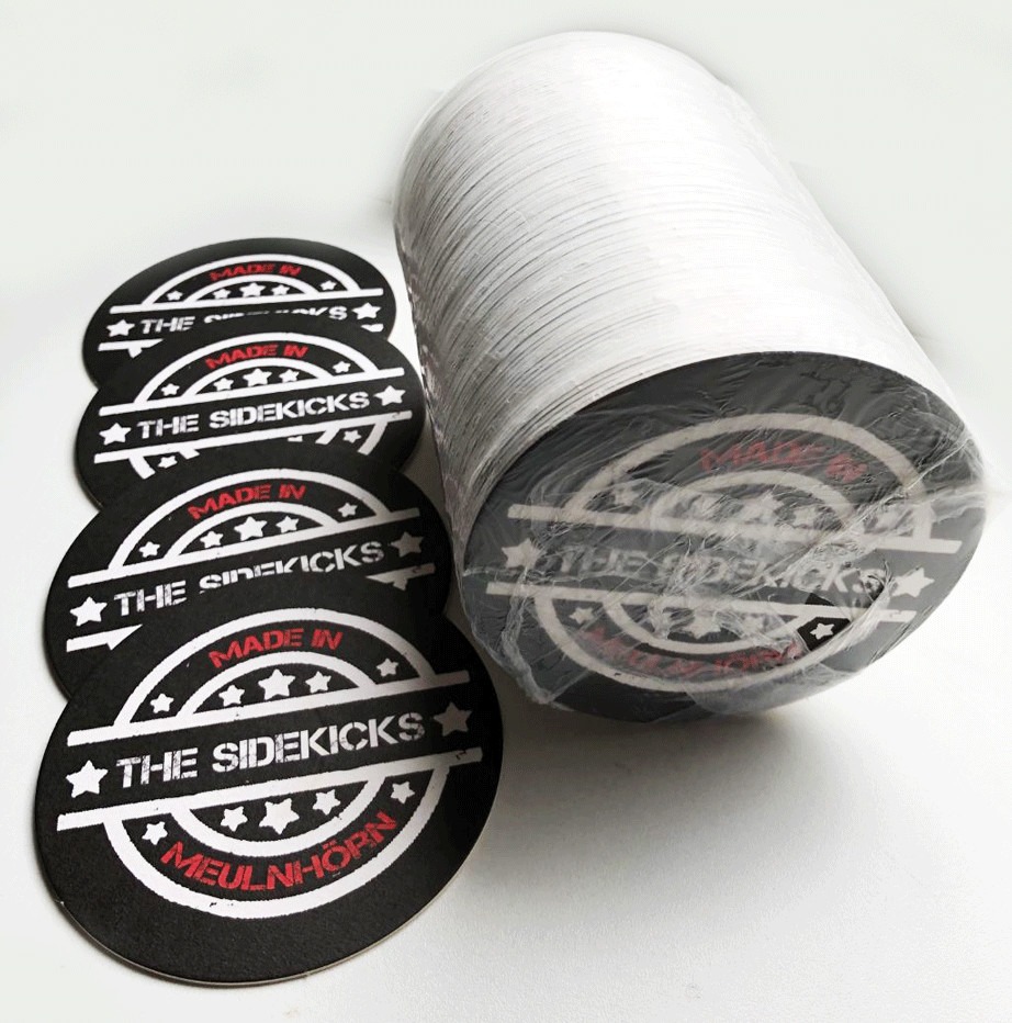 100 bierviltjes 2 -zijdig bedrukt met het logo van The Sidekicks.